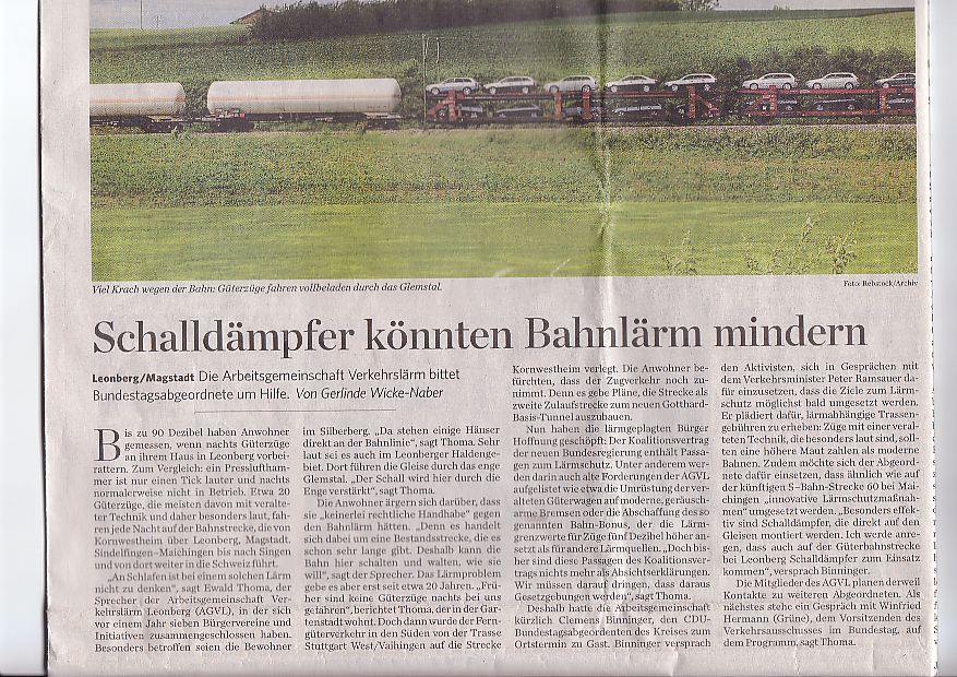 Gemeinsam gegen Bahnlärm - Bürger gründen Arbeitsgemeinschaft