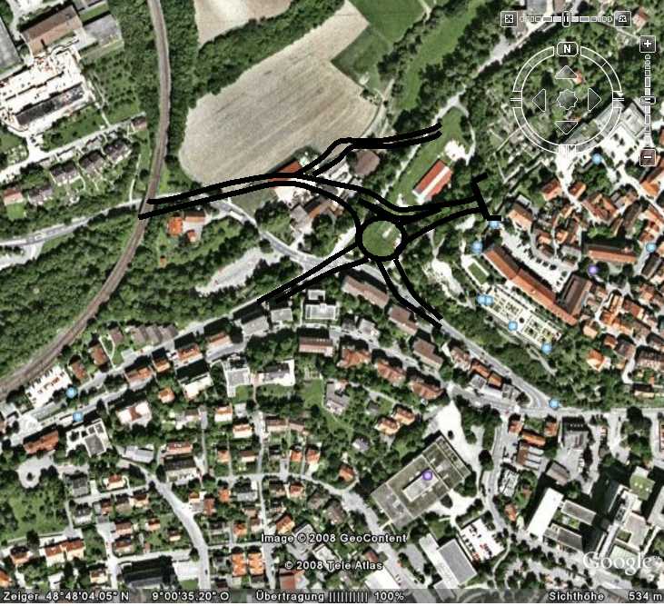 Umgebung, wo das Portal und der Kreisel hinkommen soll