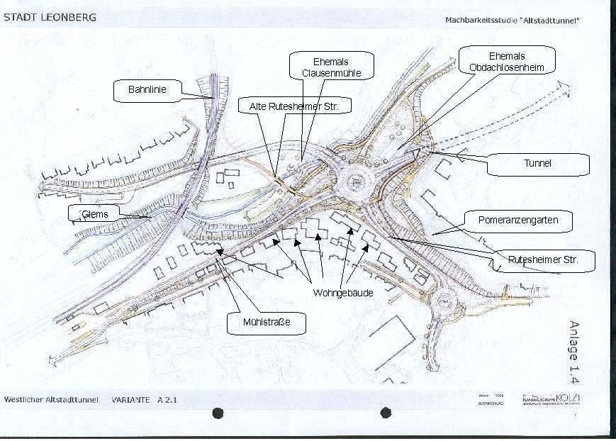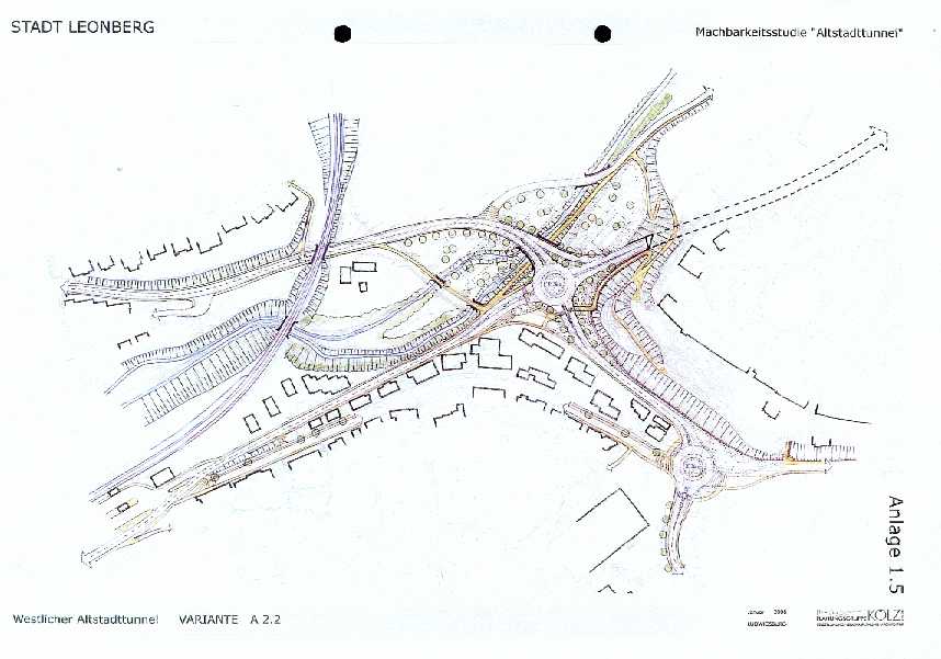 | Variante A 2.2 1-spuriger Kreisverkehr, allerdings mit direkter Spur zur Rutesheimer Straße. Gleichzeitig ein Indiz dafür, dass über die Rutesheimer Straße eine neue 'Umfahrungsroute' in Richtung Rutesheim gewollt ist. Die östliche Mühlstraße in Richtung Höfingen wird separat angeschlossen.