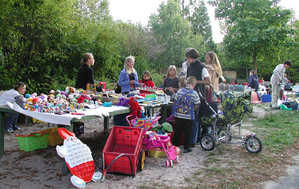 Kinderflohmarkt auf dem Spielplatz in der neuen Gartenstadt.