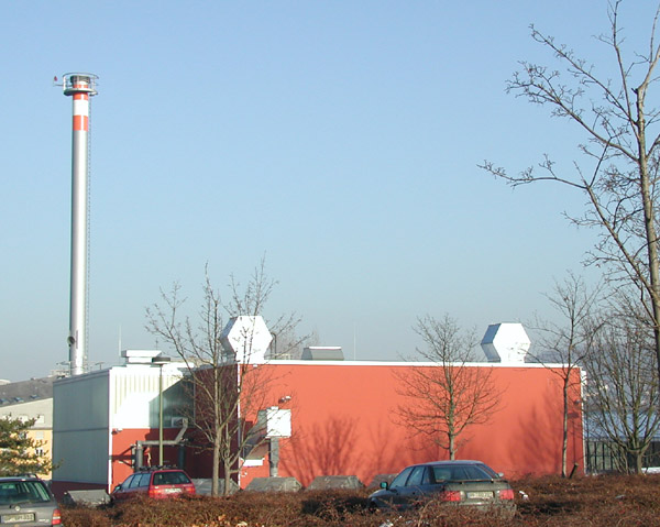 | Zur umweltfreundlichen Energiegewinnung gibt es in der Leonberger Gartenstadt auch ein Holzhackschnitzelheizkraftwerk zwischen Krankenhaus und Berufsschulzentrum. | ||