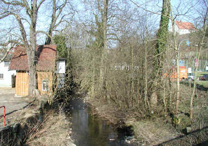 Bild: Die Glems an der Clausenmühle, unterhalb des Leonberger Schlosses. Das Flüßchen